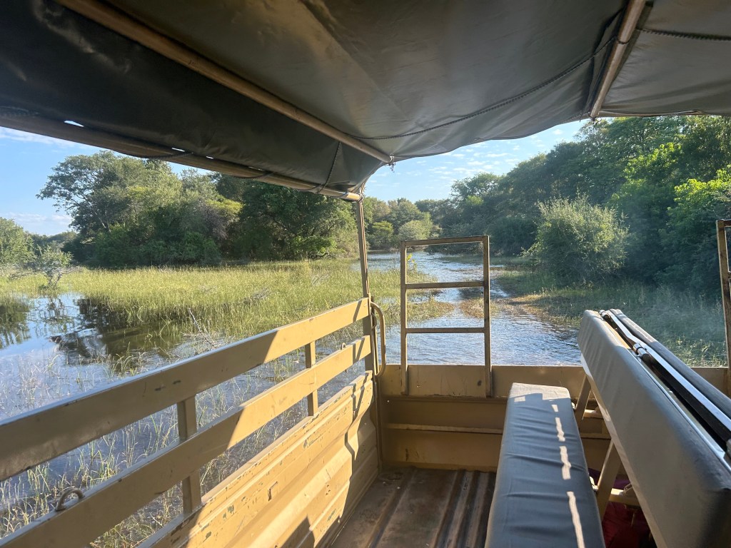 After a long days travel we arrived at the pickup point for Nguma Lodge. Nguma is the Setswana name for the large lagoon at the top of the Okavango Delta. The lodge is reached by using a large military style troop carrier driving for about 12km through the swamp.